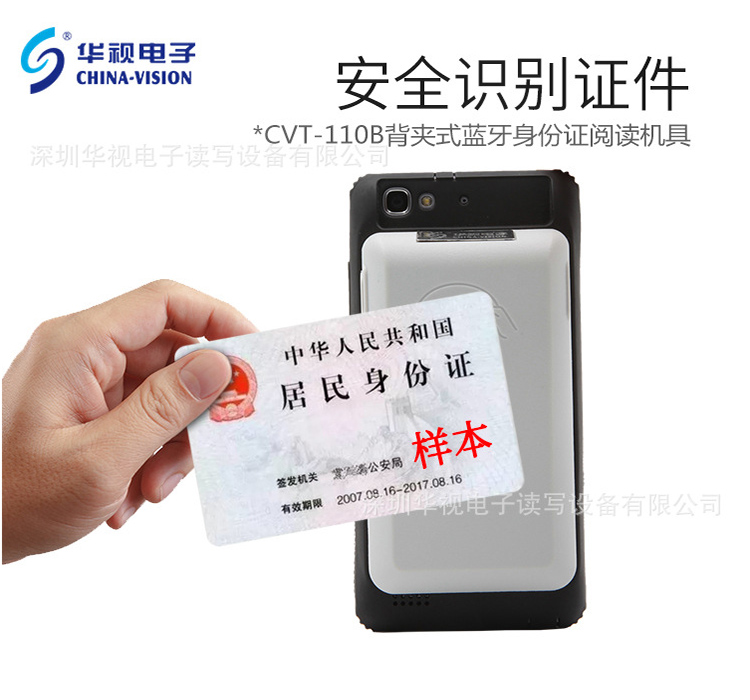 華視CVT-110B背夾式藍牙身份證閱讀機具可以讀取身份證信息,藍牙鏈接手機讀取,可以方便的固定在手